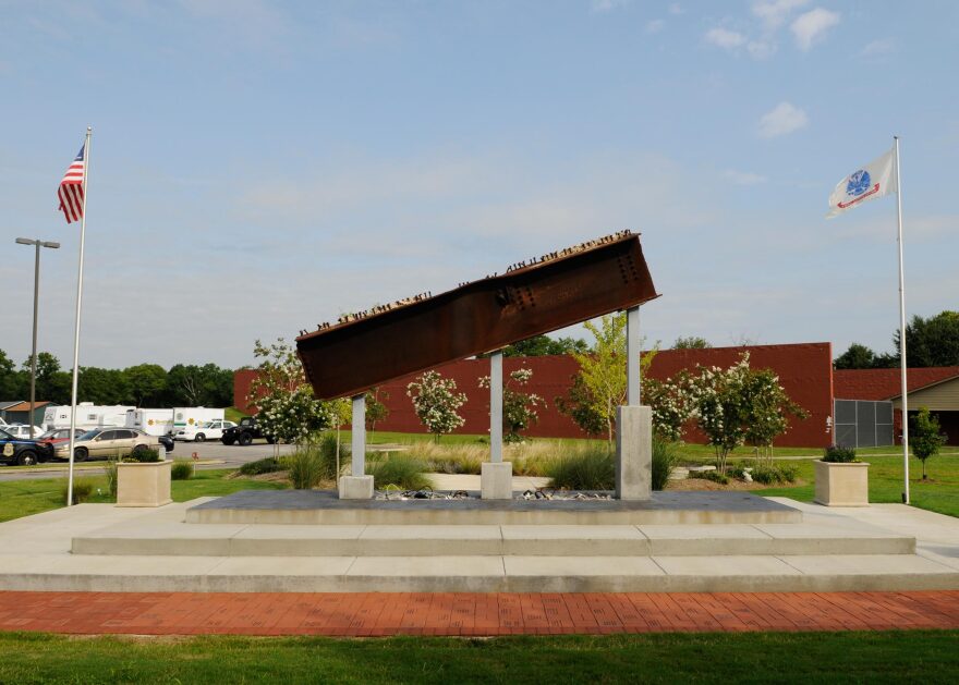 “It’s anchored by a two-thousand pound steel beam from Tower One at the World Trade Center in New York City. It points to New York City. It’s very symbolic, because it’s held on three pedestals, one representing the Fire Department, one the Police Department, and one the emergency paramedics who lost their lives in the towers that day.”